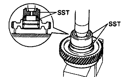 Using Special Service Tools (SST), press in the 2 outer races to the gear both side.