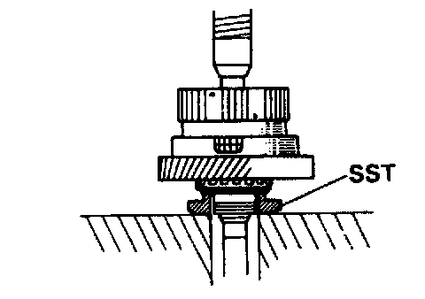 c. Using SST, press in the bearing until there is slight play between the bearings.