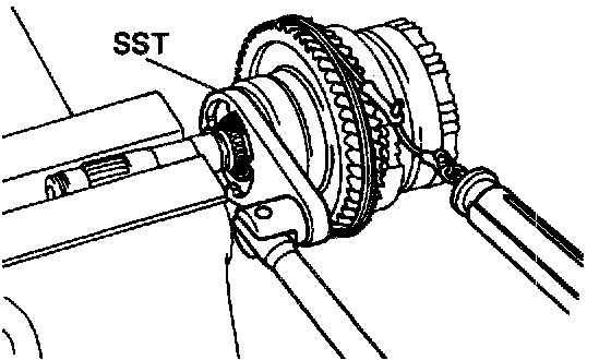 a. Place SST onto the adjusting nut and hold the shaft in a vise with soft jaws.