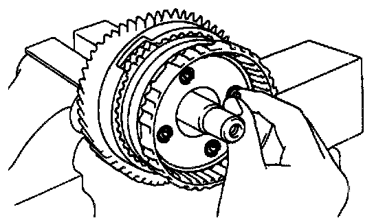 b. Hold the overdrive direct clutch and turn the intermediate shaft. The shafts should turn freely clockwise and should lock counterclockwise.