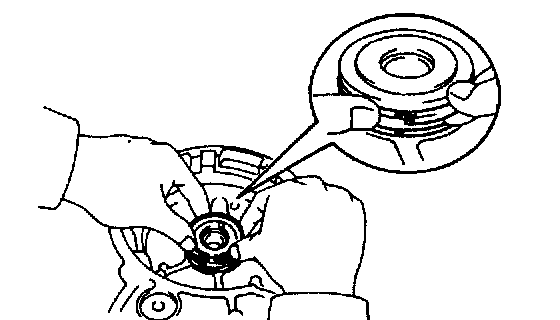HINT: Press in the bearing until the side surface of the inner race touches the shaft.