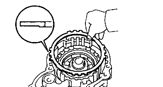 While turning the overdrive gear clockwise, install the overdrive gear assembly to the case. If the overdrive gear assembly is properly installed to the overdrive case, the clearance between them will be about 24 mm (0.94 inch).