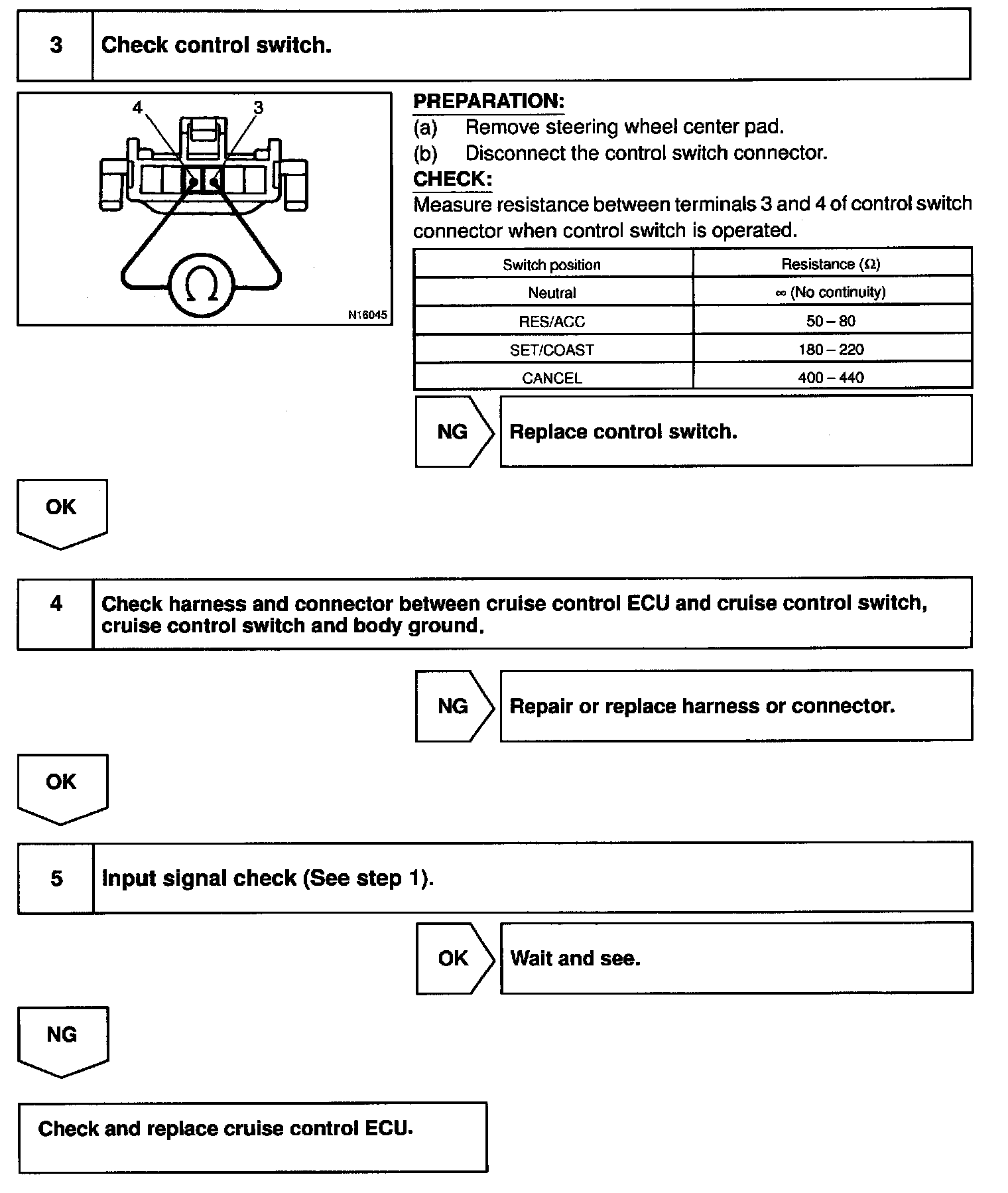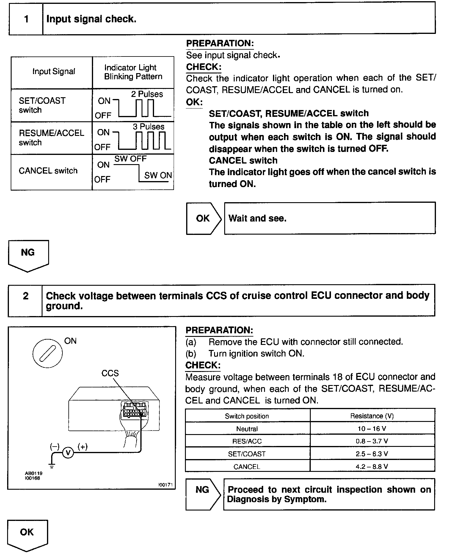 This circuit carries the SET/COAST, RESUME/ACCEL and CANCEL signals (each voltage) to the ECU.