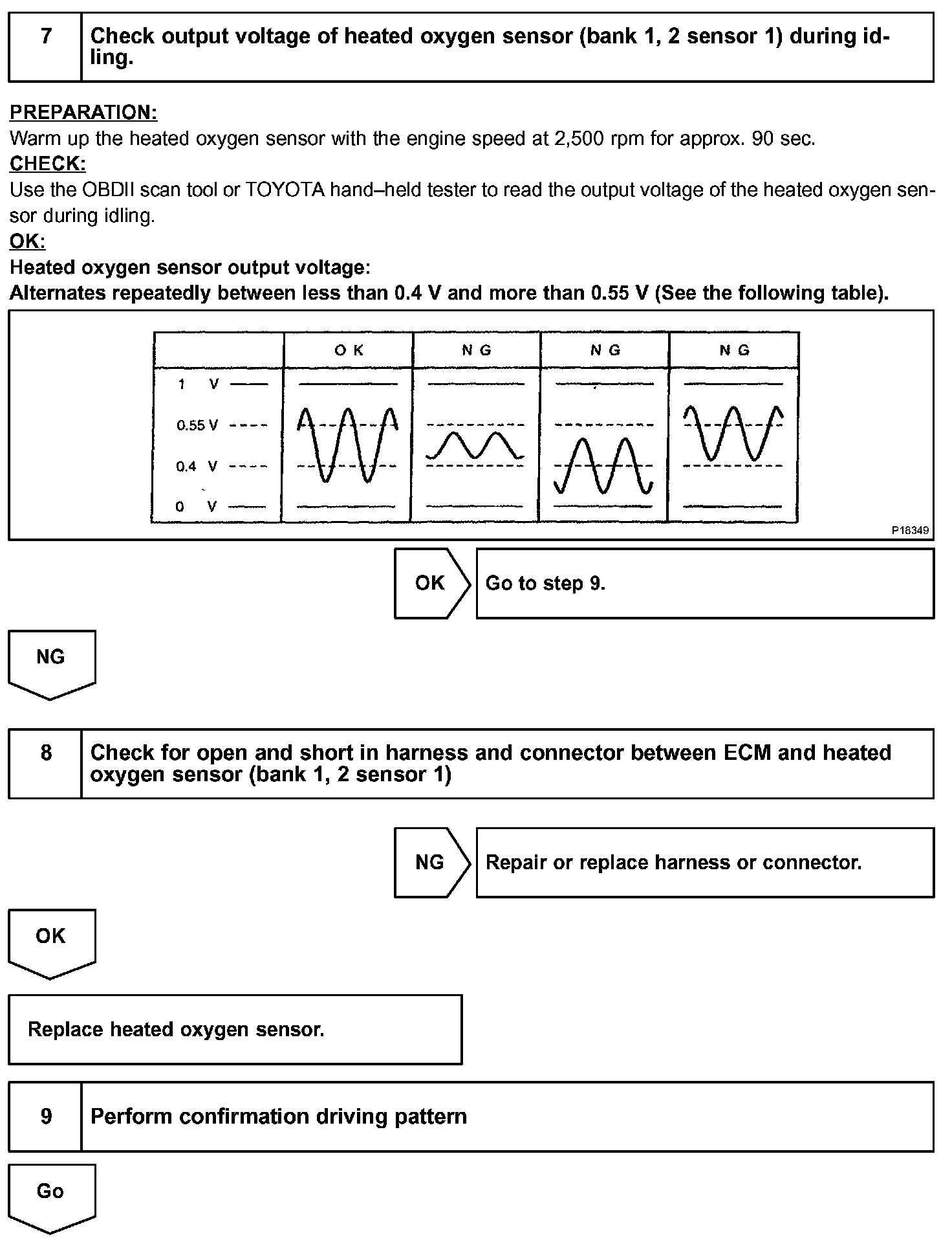 HINT: Read freeze frame data using TOYOTA hand-held tester or OBD II scan tool, as freeze frame data records the engine conditions when a malfunction is detected. When troubleshooting, it is useful for determining whether the vehicle was running or stopped, the engine was warmed up or not, the air-fuel ratio was lean or rich, etc. at the time of the malfunction.