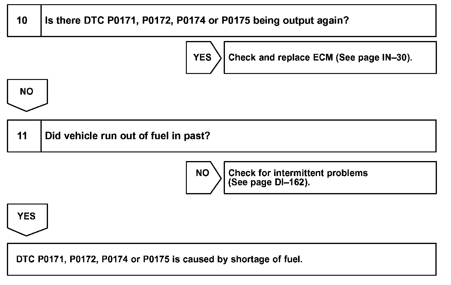 - If the vehicle runs out offuel, the air-fuel ratio is LEAN and DTC P0171 or P0174 is recorded. The MIL then comes on.