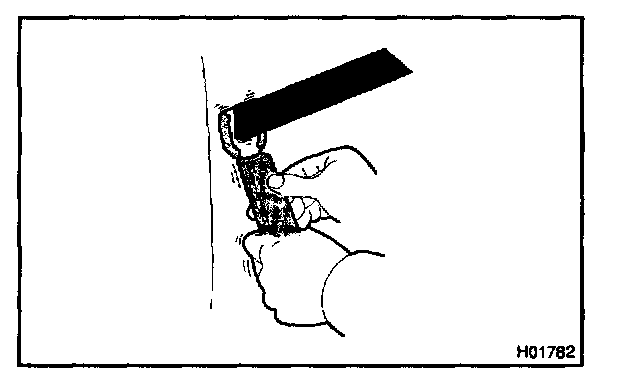 Using a scraper, pry the moulding loose about 30 mm (1.18 in.) from each end.