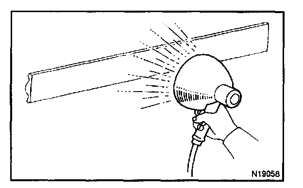 a. Using a heat light, heat the body mounting surface to 40 - 60 degrees C (104 - 140 degrees F).