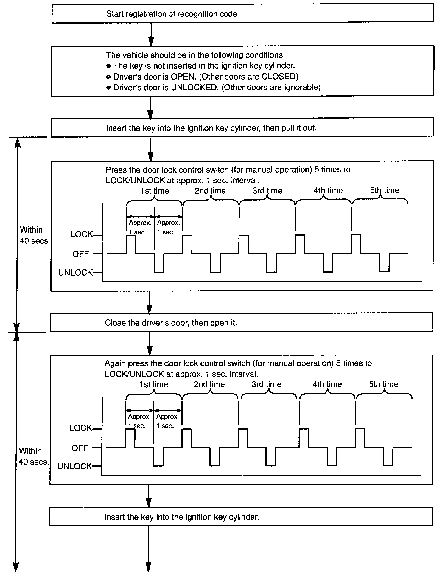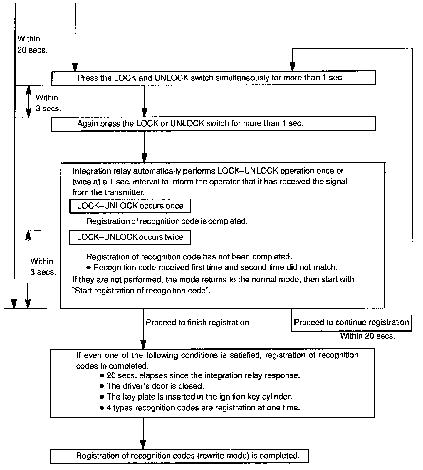 b. Follow the chart on the following to register the transmitter recognition code at the wireless door lock control receiver.