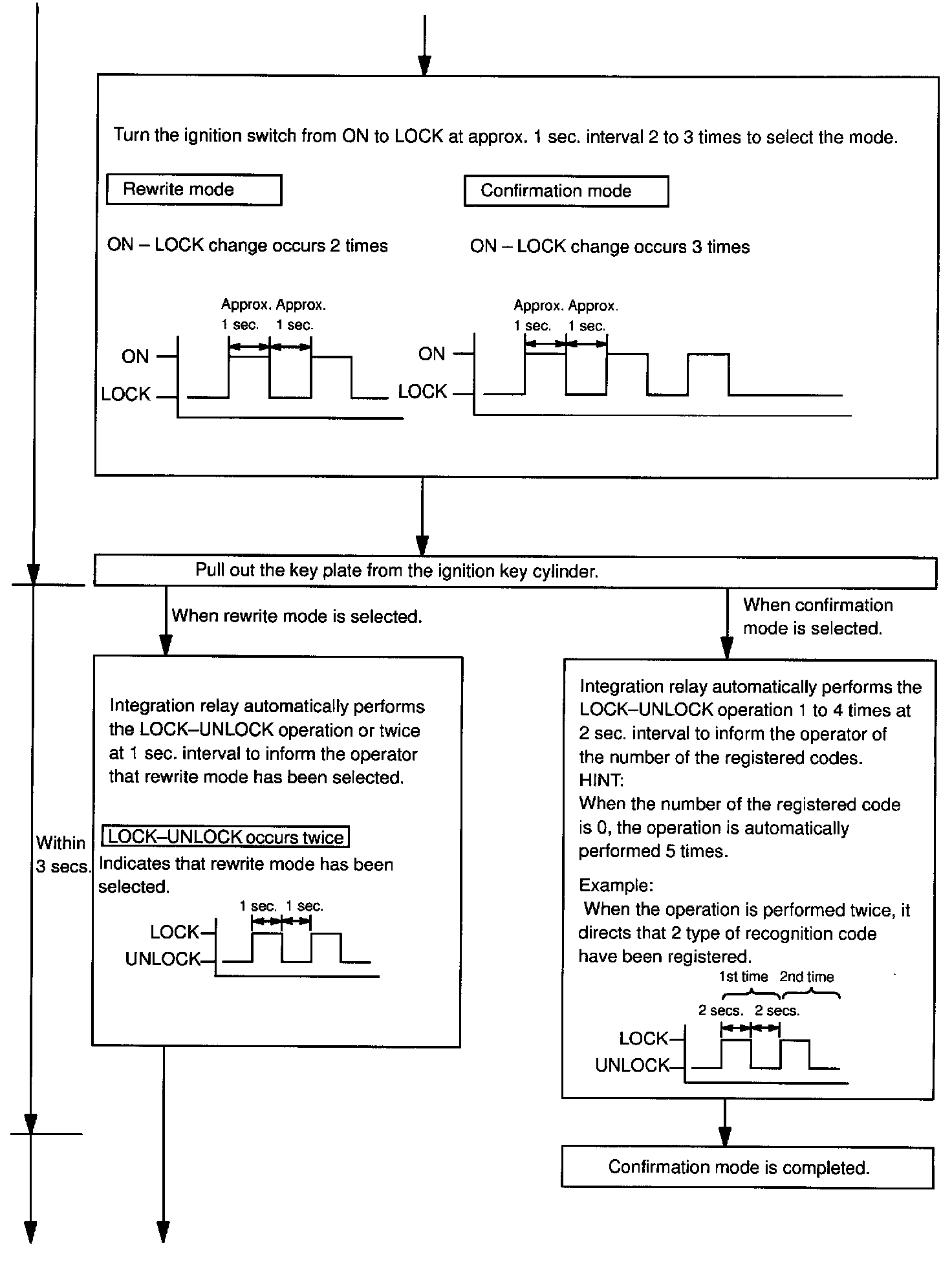 - The confirmation mode is for confirming how many recognition codes are already registered before you rewrite recognition codes.