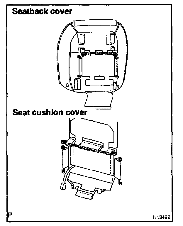 Install the seat covers with new hog rings to the seat cushion pad and the seatback pad.
