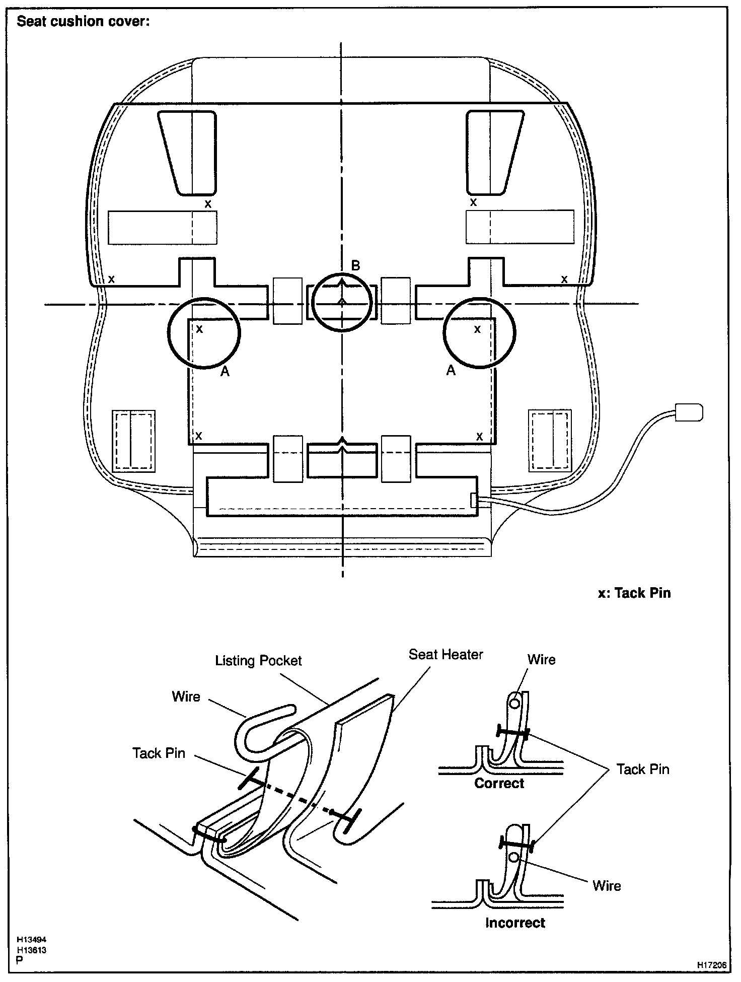 Cut the 8 tack pins which are fastened to the seat heater and then remove the seat heater.