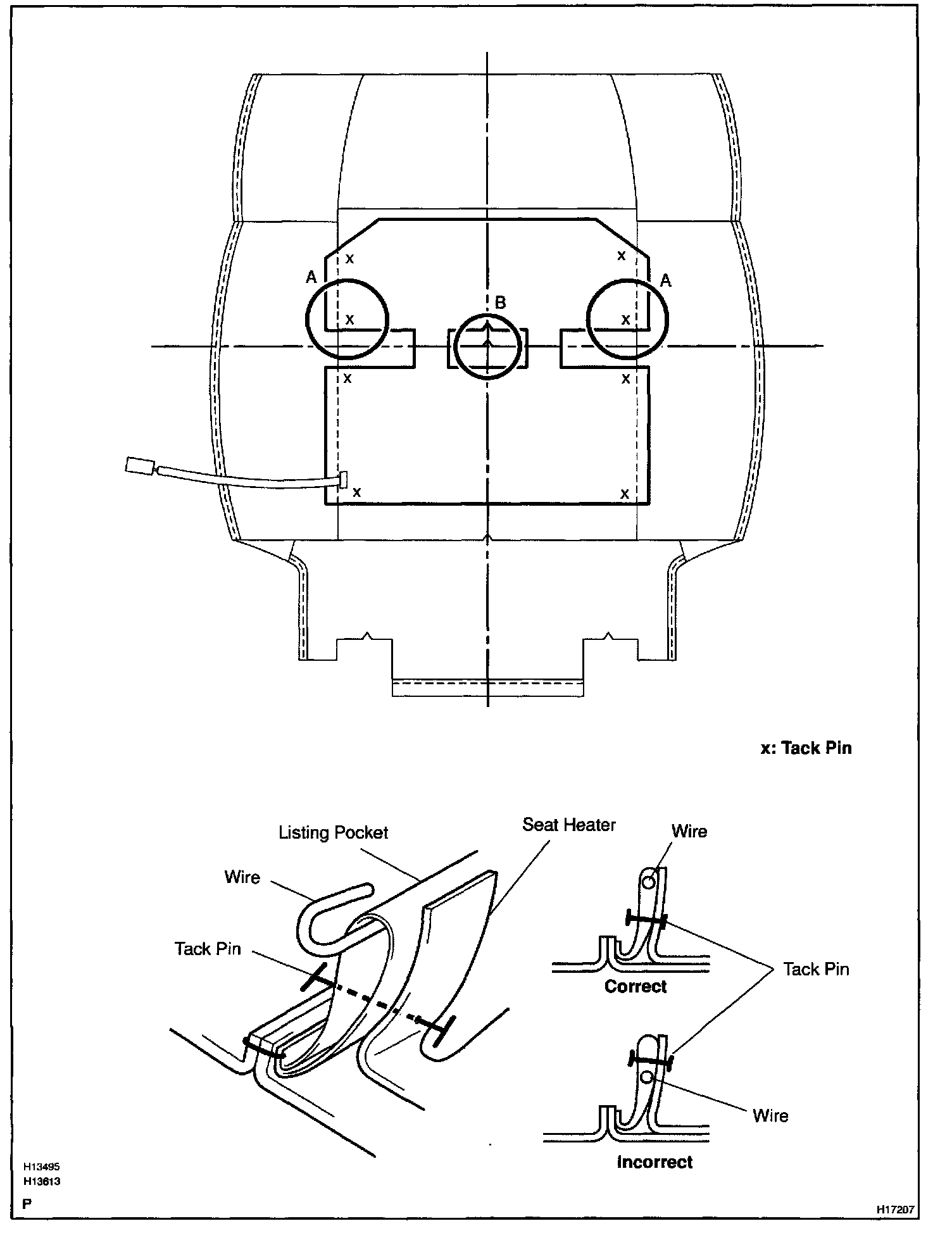 HINT: Pass the wire over the seat heater as shown in the illustration.