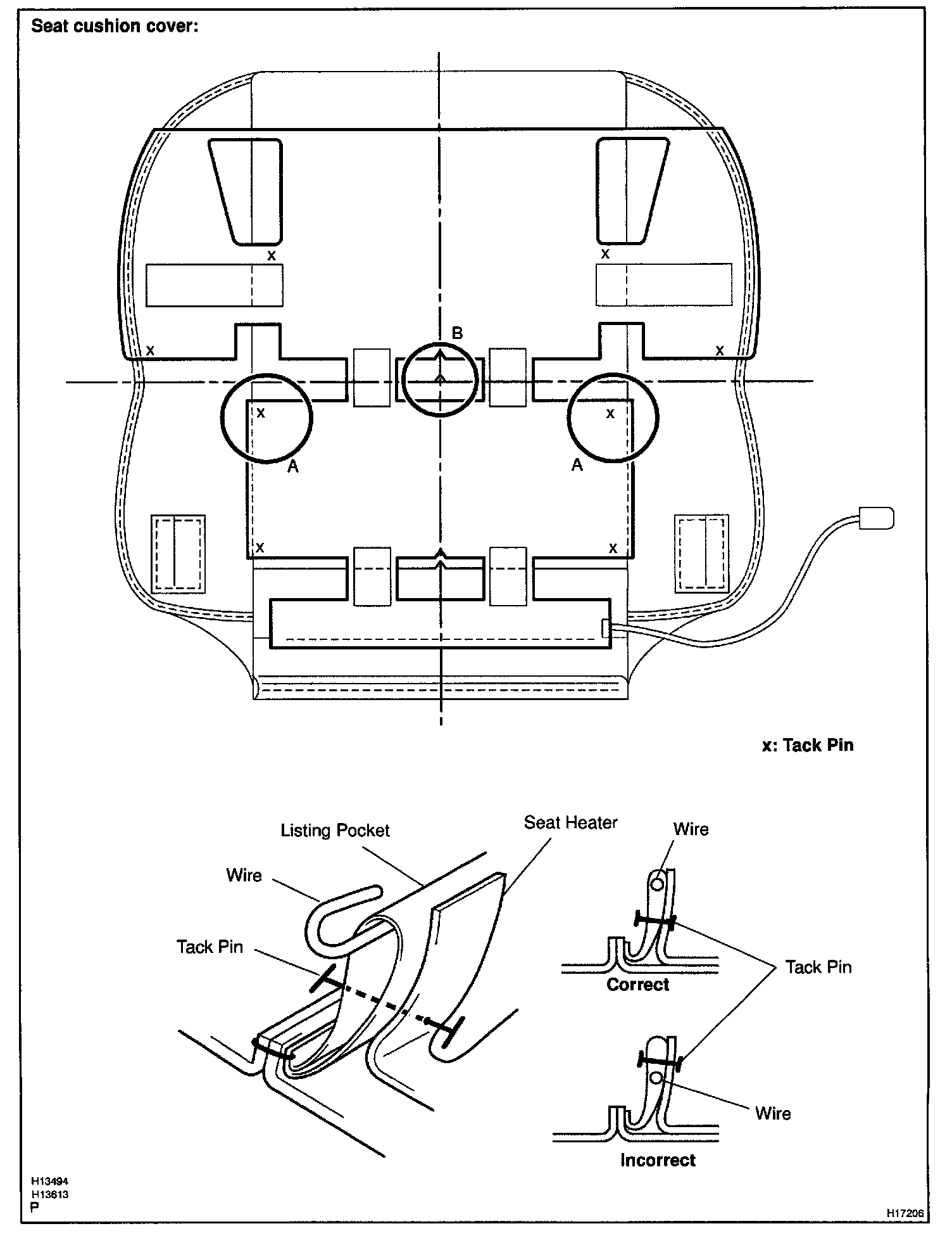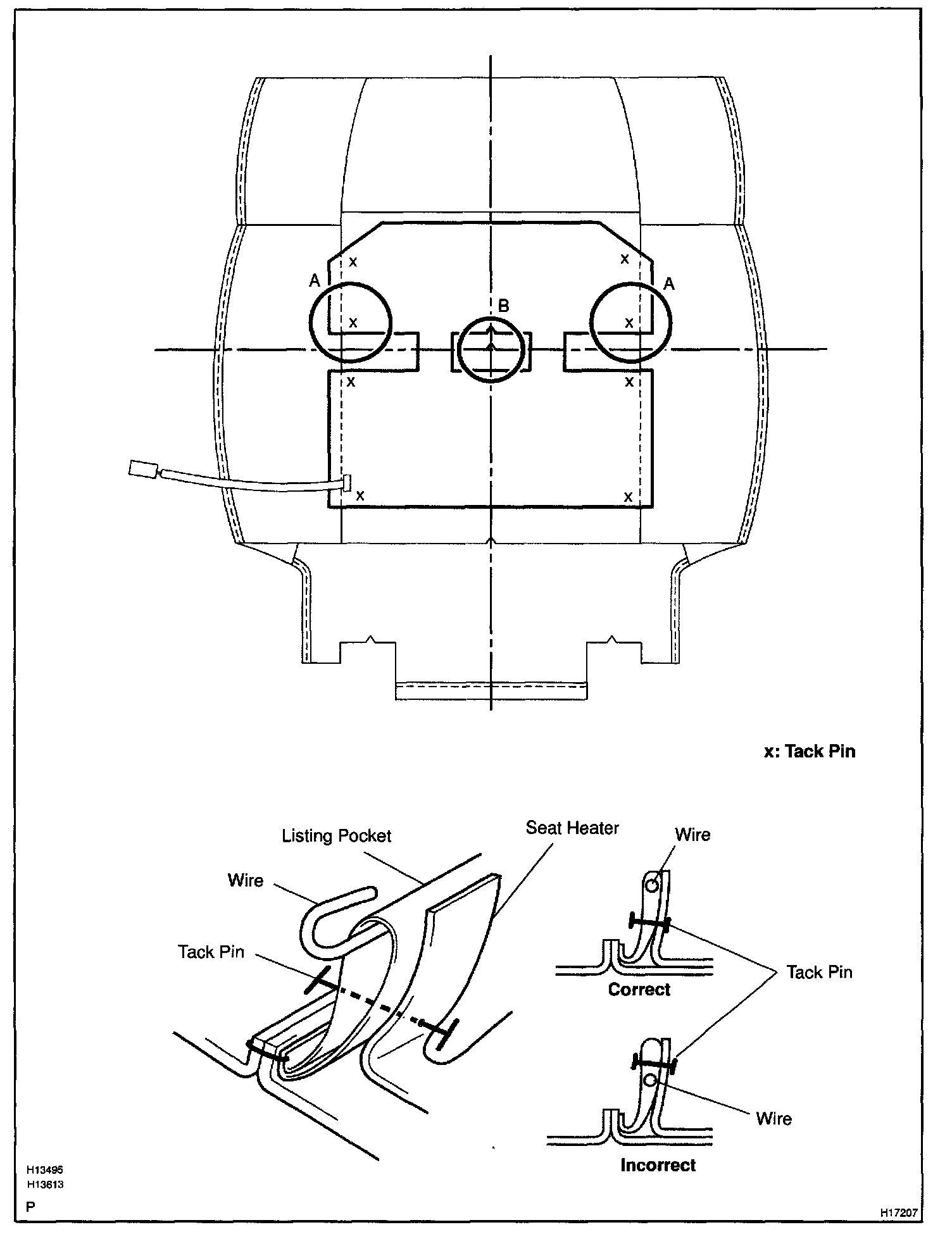 NOTE: Do not substitute other metal part for tack pins. Insufficient distance between the heater and cover may result in damage to the heater.