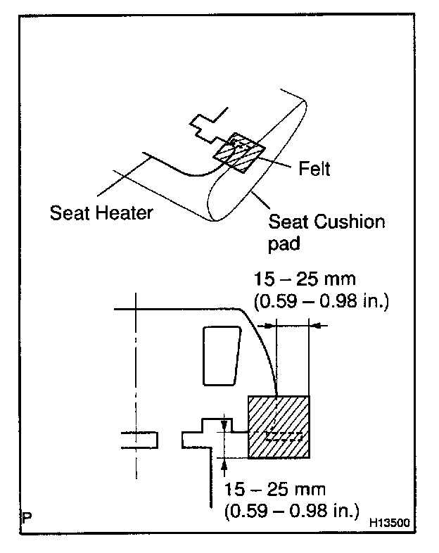 Attach a piece of felt to the seat heater and the pad as shown in the illustration.