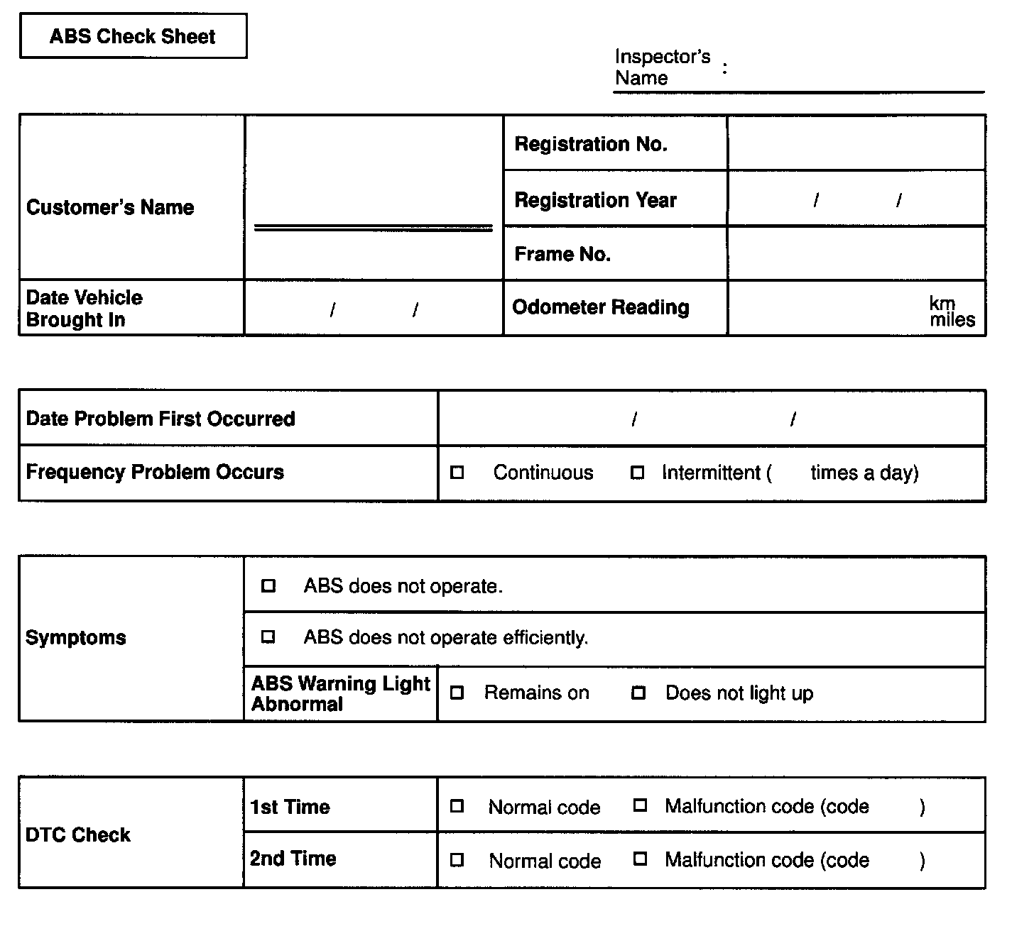 ABS Check Sheet: