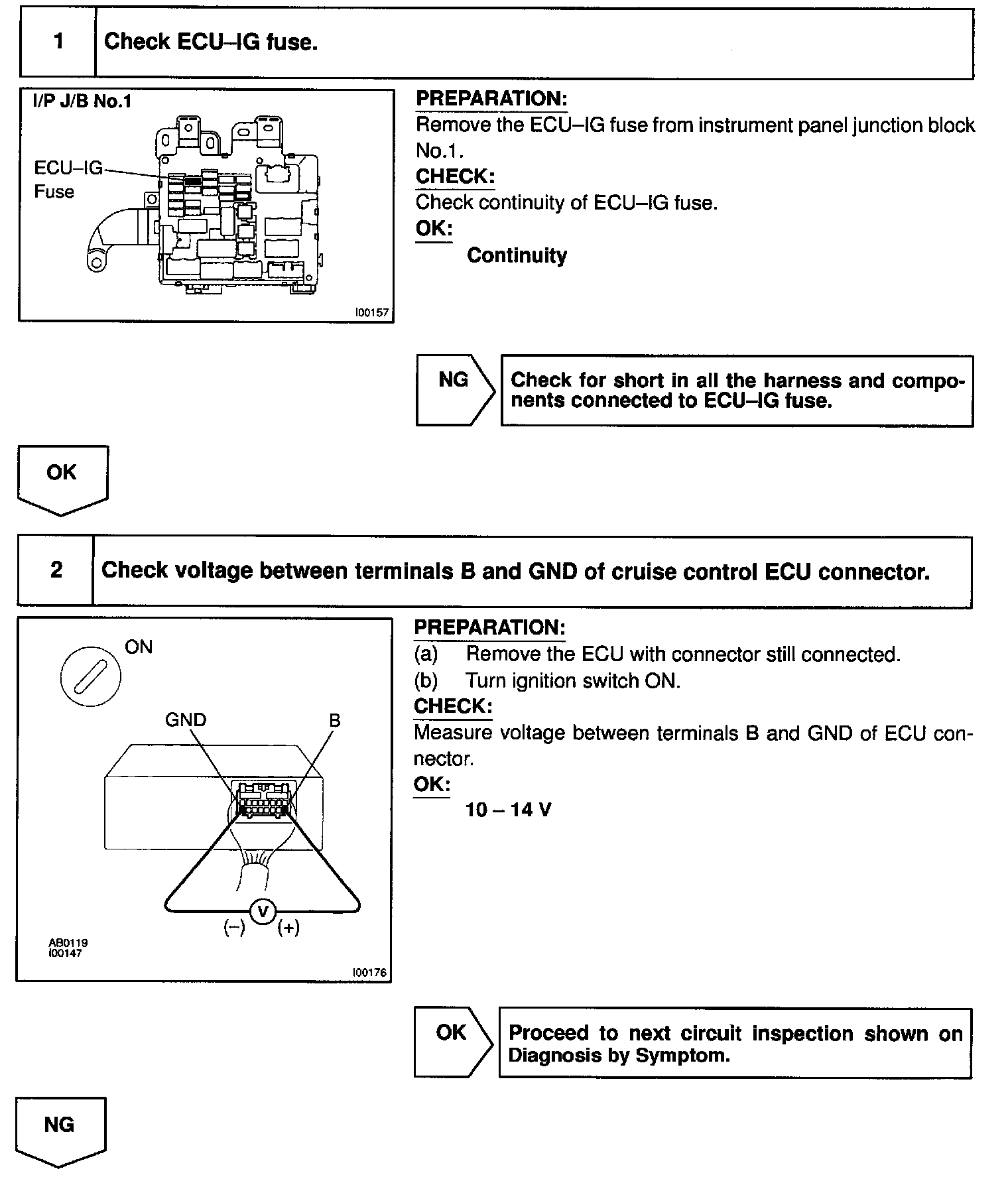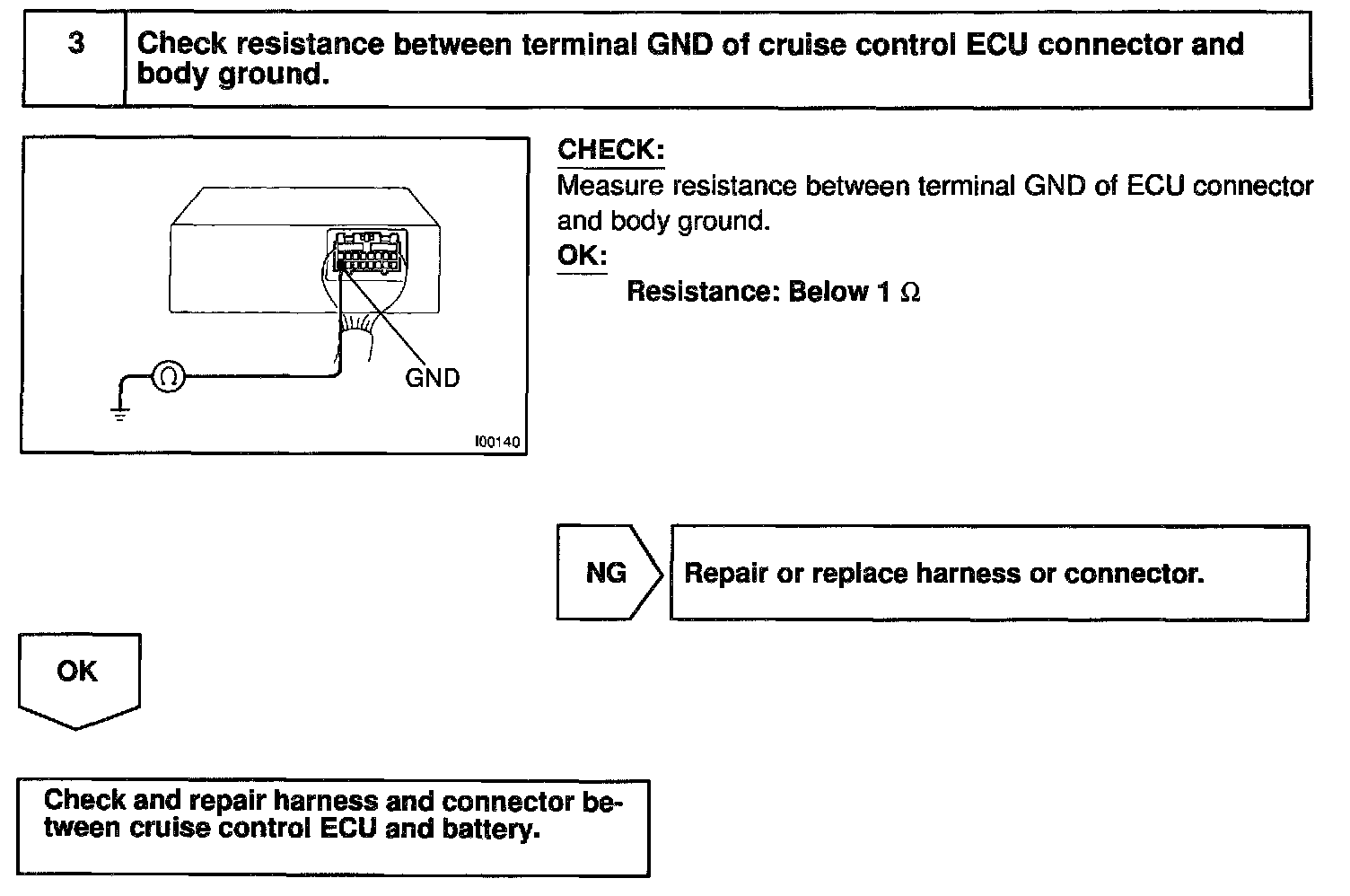 The ECU power source supplies power to the actuator and sensors, etc., when terminal GND and the cruise control ECU case are grounded.