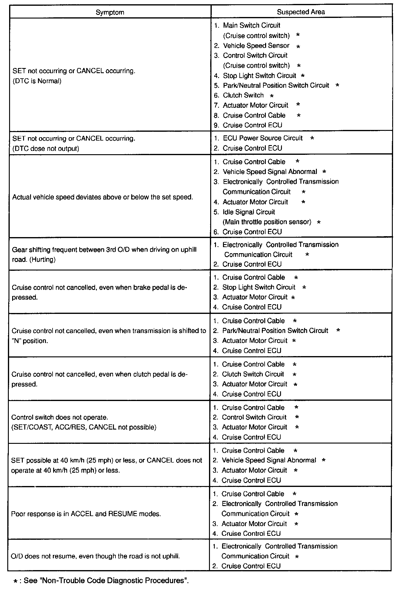 Problem Symptoms Table Part 1: