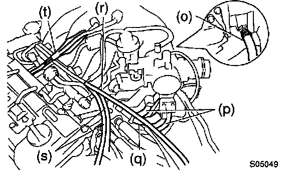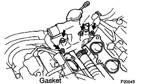 p. Disconnect the 2 water bypass hoses from the throttle body.