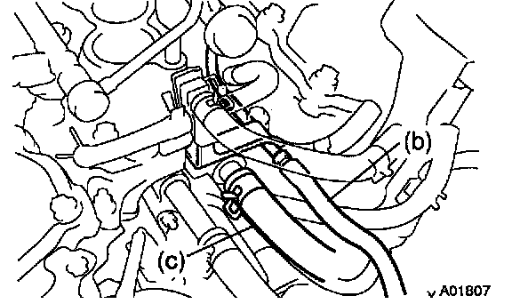 c. Disconnect the heater hose from the intake manifold.