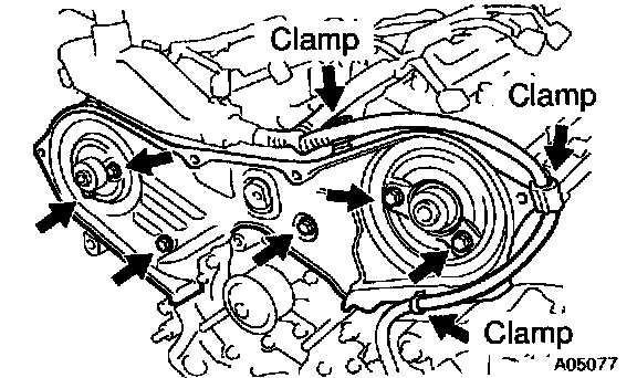 a. Disconnect the 3 engine wire clamps from the timing belt cover.