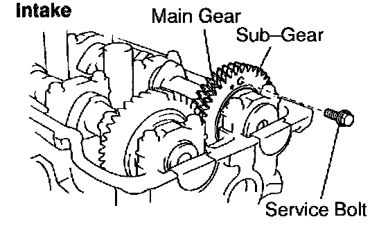 2. Secure the exhaust camshaft sub gear to the main gear with a service bolt.