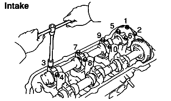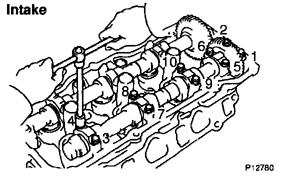4. Remove the 5 bearing caps and intake camshaft.