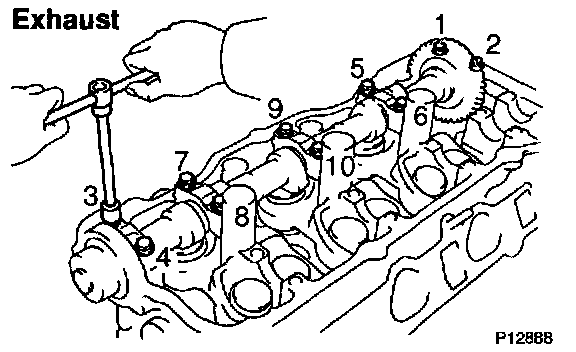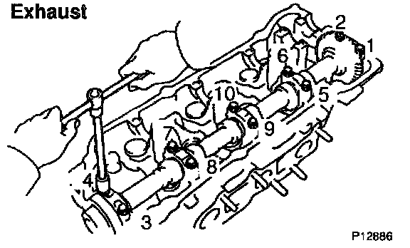 1. Uniformly loosen and remove the 10 bearing cap bolts in several passes and in the sequence shown.