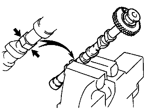 a. Mount the hexagonal wrench head portion of the camshaft in a vise.