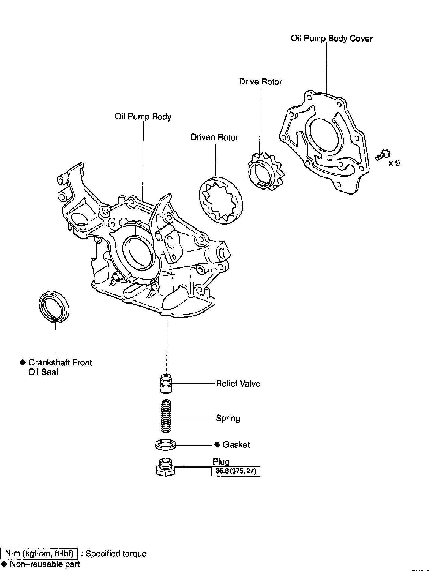 Torque: 36.8 Nm (375 kgf-cm, 37 ft. lbs.)