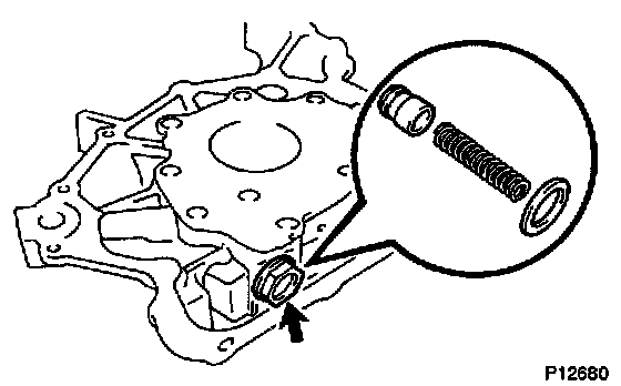 Insert the relief valve and spring into the pump body hole, and install the plug with a new gasket.
