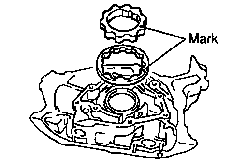 Place the drive and driven rotors into the oil pump body with the mark facing upward.