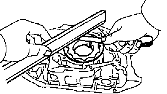 c. Using a screwdriver, remove the oil pan by prying the portions between the cylinder block and oil pan.