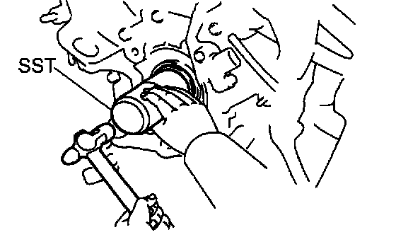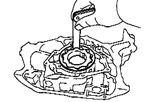 2. Using SST and a hammer, tap in a new oil seal until its surface is flush with the oil pump body edge.