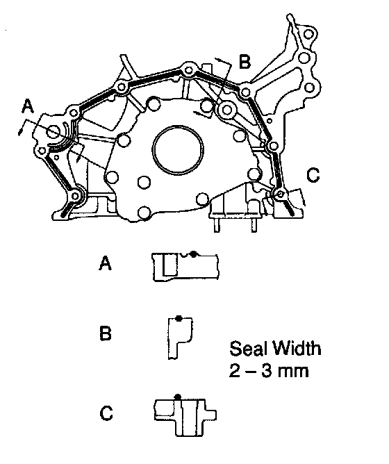 b. Apply seal packing to the oil pump as shown in the illustration.