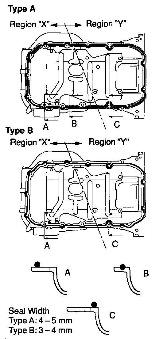 b. Apply seal packing to the oil pan as shown in the illustration.