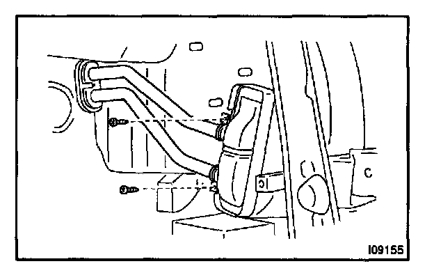 c. Remove the 2 screws and 2 clamps and disconnect the 2 heater radiator pipes.