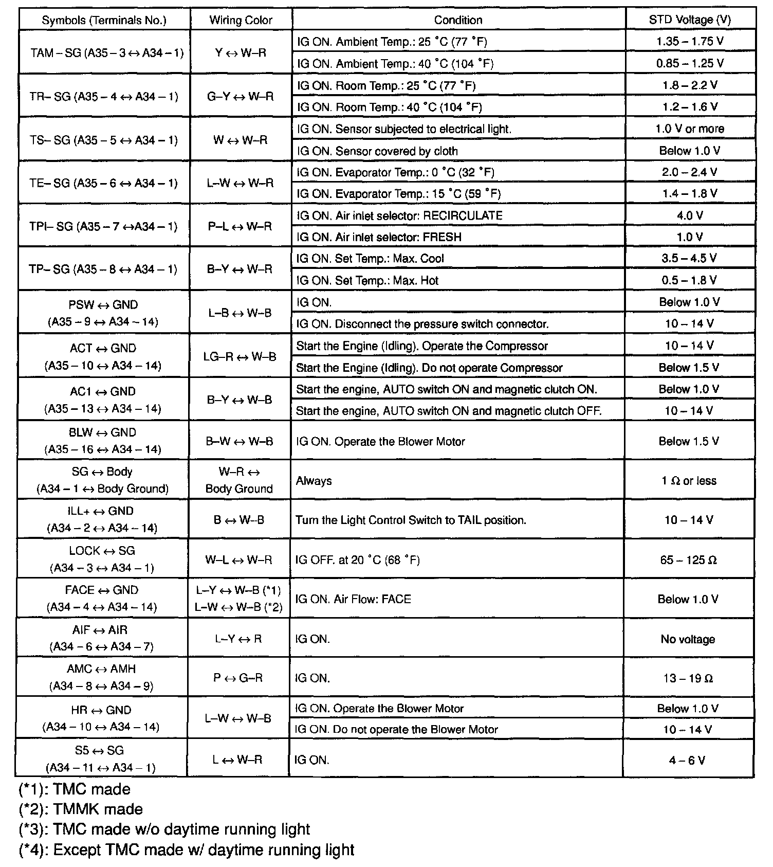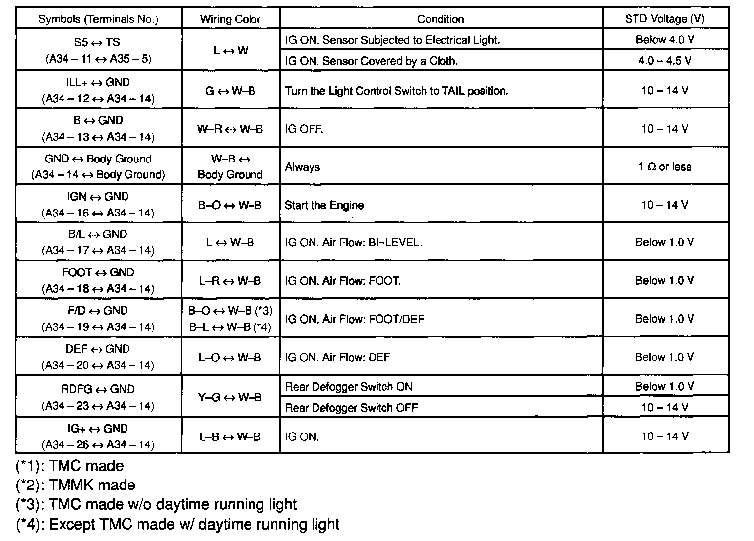 Pinout Values and Diagnostic Parameters