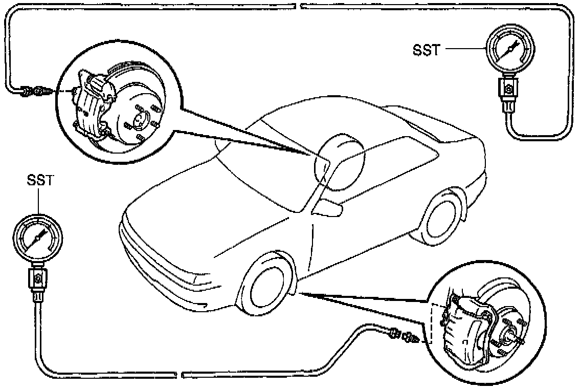 4. REMOVE LSPV GAUGE (SST) AND BLEED BRAKE SYSTEM