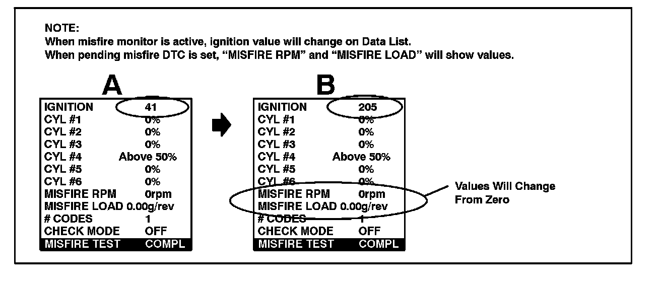 5. Confirm misfire has been eliminated (0% at all times) using Diagnostic Tester while engine is idling.