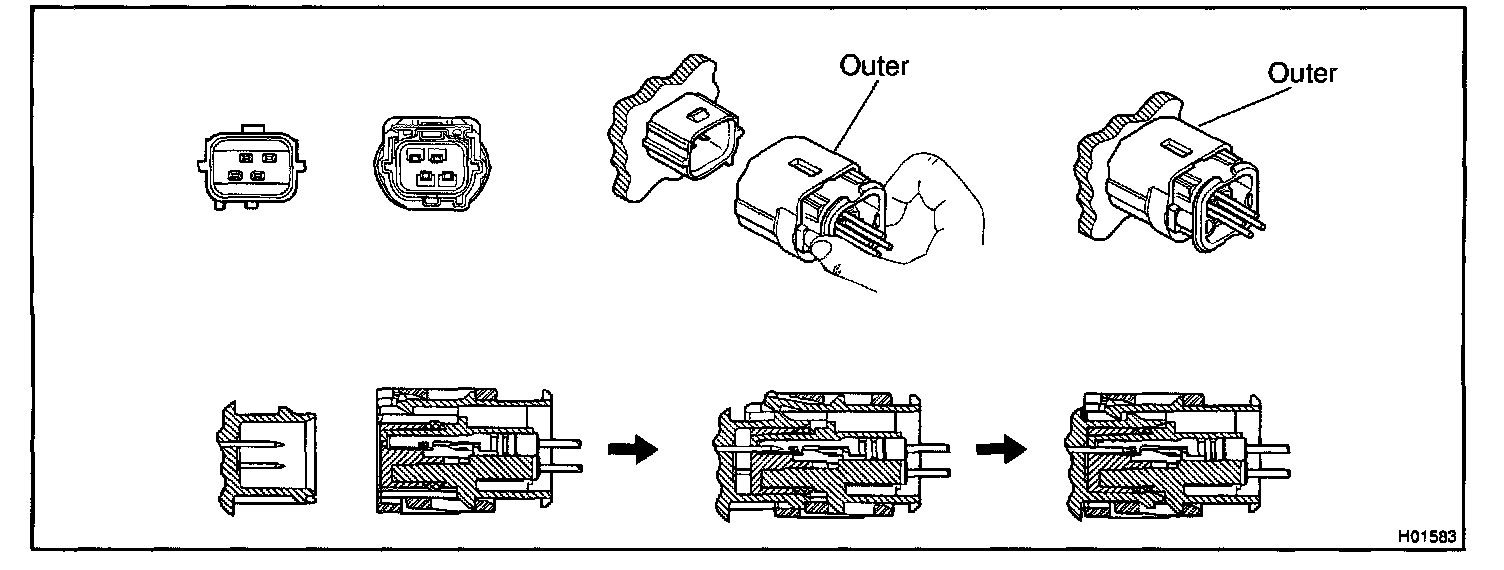 b. As they are fitted in, the outer slides rearward. Press it until the outer returns to its original position again.