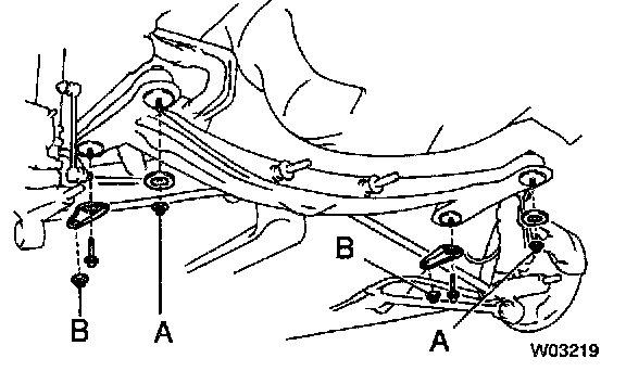 HINT: When assembling the No.2 lower suspension arm, make sure that the length of A and B shown in the illustration is the same.