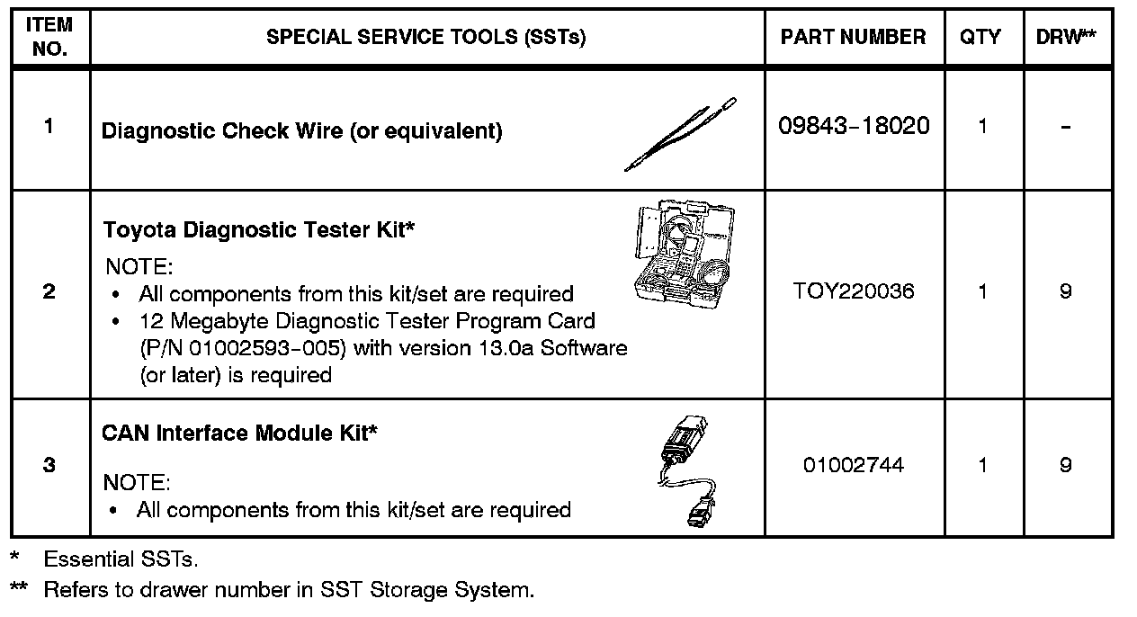 ^ August 26, 2005: The model years for each model have been specifically defined in the "Applicable Vehicles" section. The "Required SSTs" section has been updated.