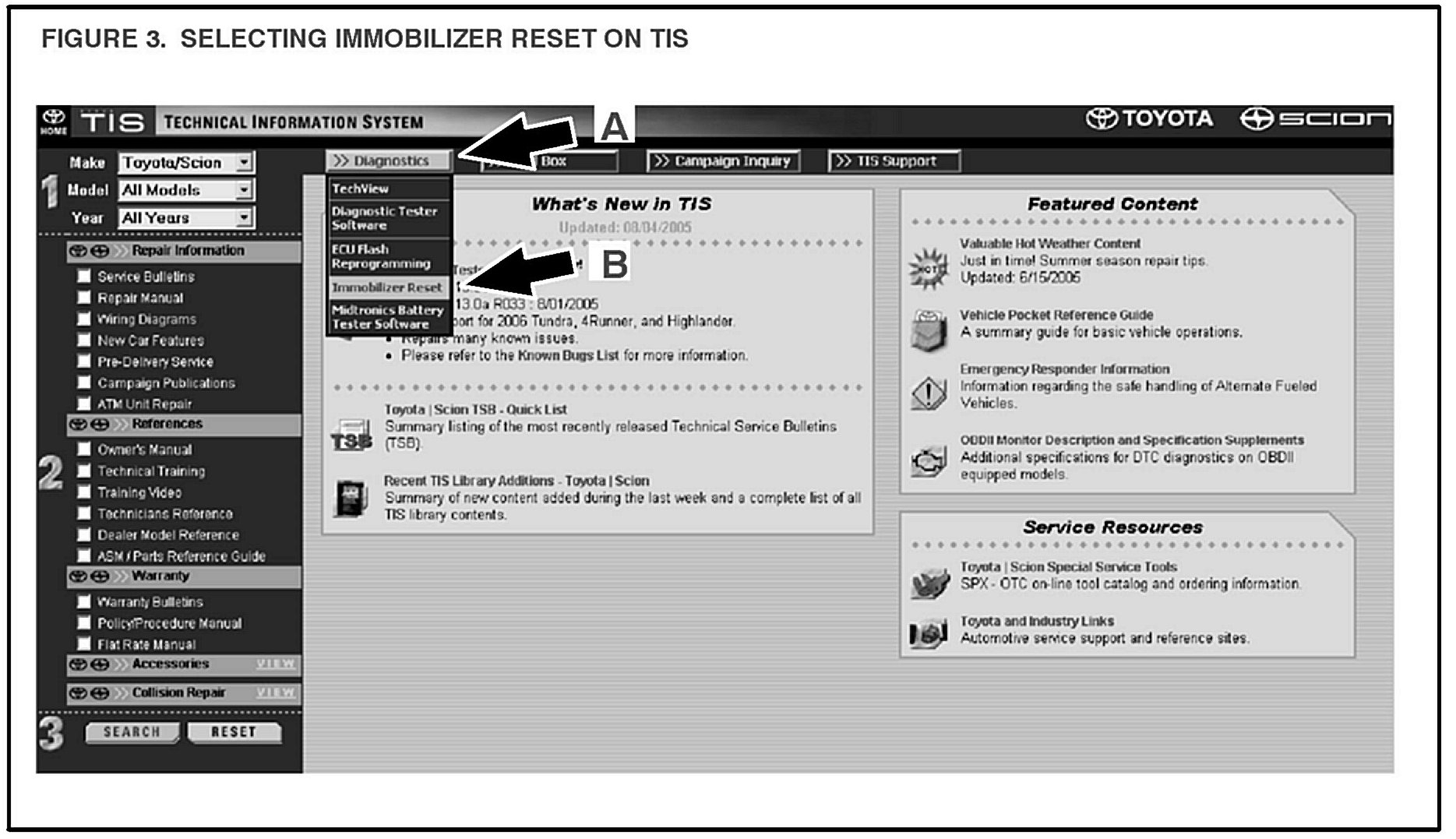 2. Using TIS, select Immobilizer Reset, and complete the request form to retrieve a Reset "Passcode Number."