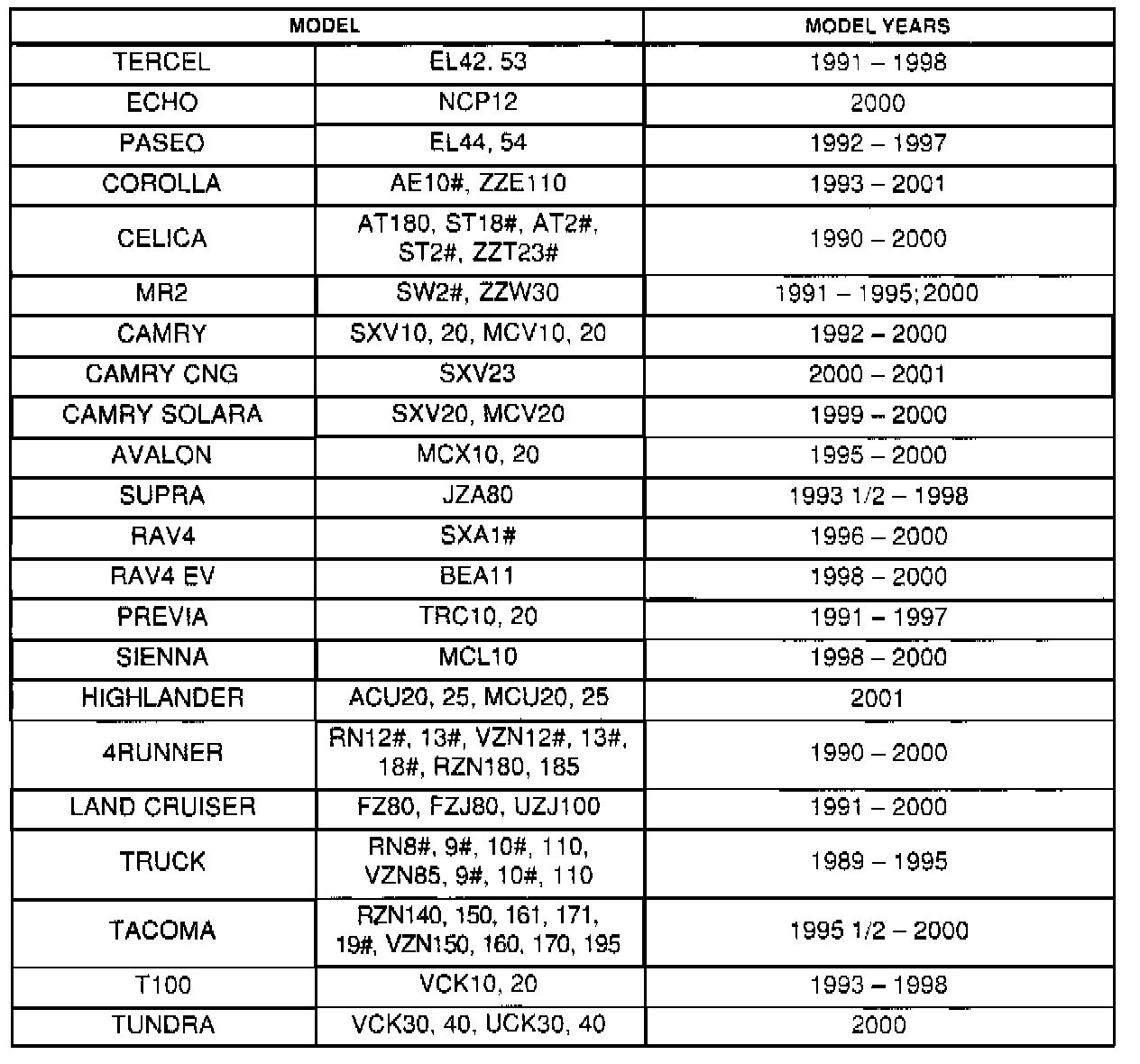 All Applicable Models