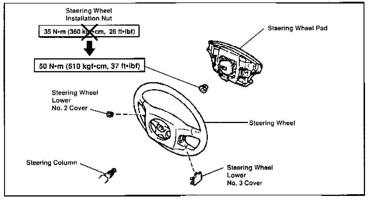 To make the steering wheel installation procedure similar for all models. the steering wheel nut tightening torque has been standardized.