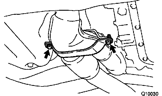 d. Remove the 2 exhaust front pipe clamp bolts and exhaust front pipe.