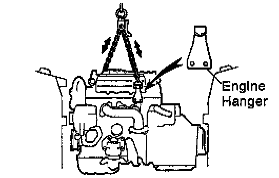 b. Attach the engine chain hoist to the engine hangers.