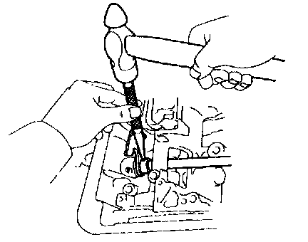 f. Using a pin punch, drive in the roll pin until its surface is flush with the manual valve lever surface.