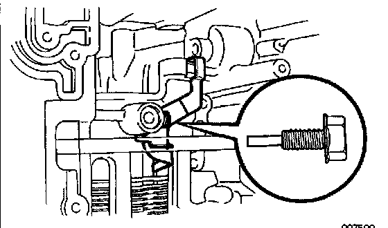 b. Install the pin through the oil pump mounting bolt hole.