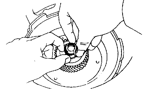 b. Install the overdrive brake drum to the case.